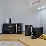 يشتمل المطبخ كامل التجهيز على معدات صنع القهوة والشاي، بالإضافة إلى الغلاية الكهربائية والبرَّاد والفرن الأساسية للخدمة الذاتية.